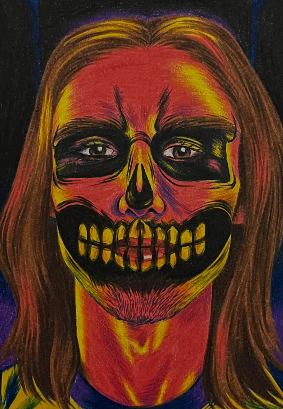 A study of my partner based off of a photograph. Colored pencil on paper, 9" x 12".